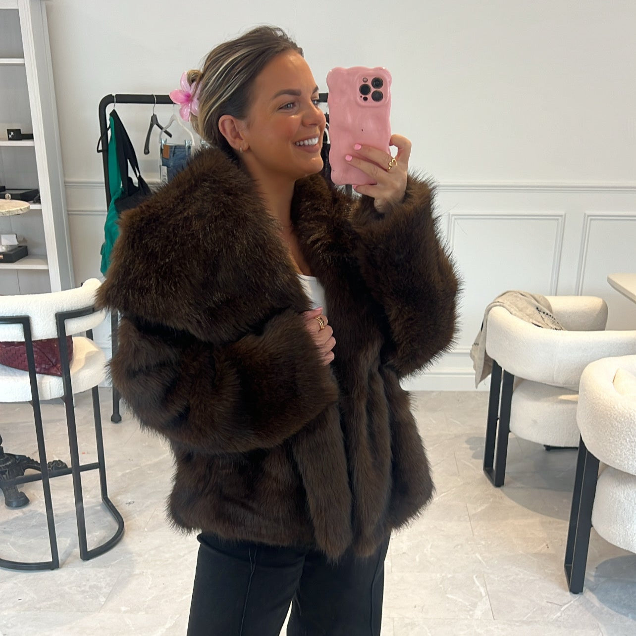 - Faux fur coat